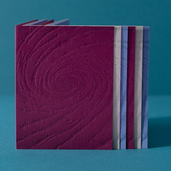 The perfect card for when *everything* feels like it's in retrograde. Cards feature a blind debossed illustration of the cosmos. Letterpress printed on Orchid, Cobblestone Grey, and Azure Blue papers, and paired with soft white envelopes, blank inside.