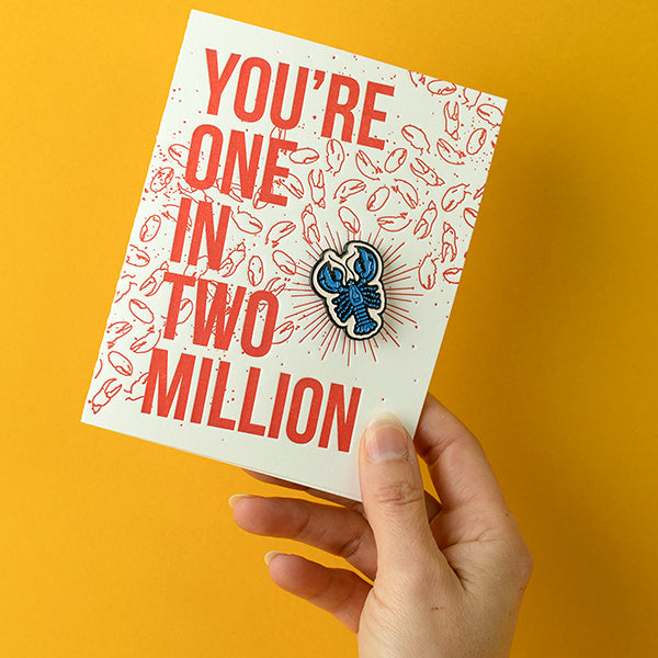 Tell your "Lobster" they are the rarest breed with this enamel pin and greeting card declaring them "One in Two-Million." The Lobster design is a wood cut selected from our century-old type collection.