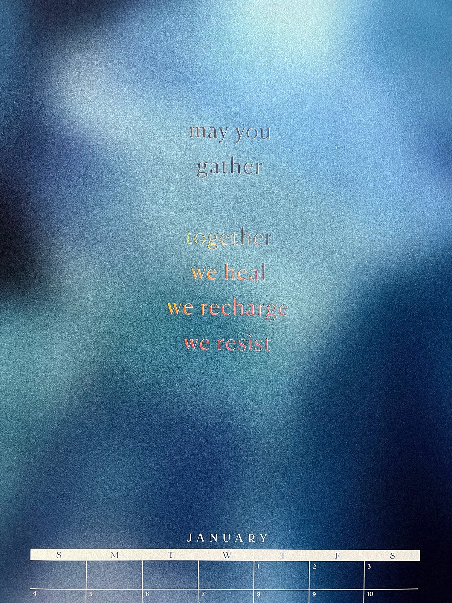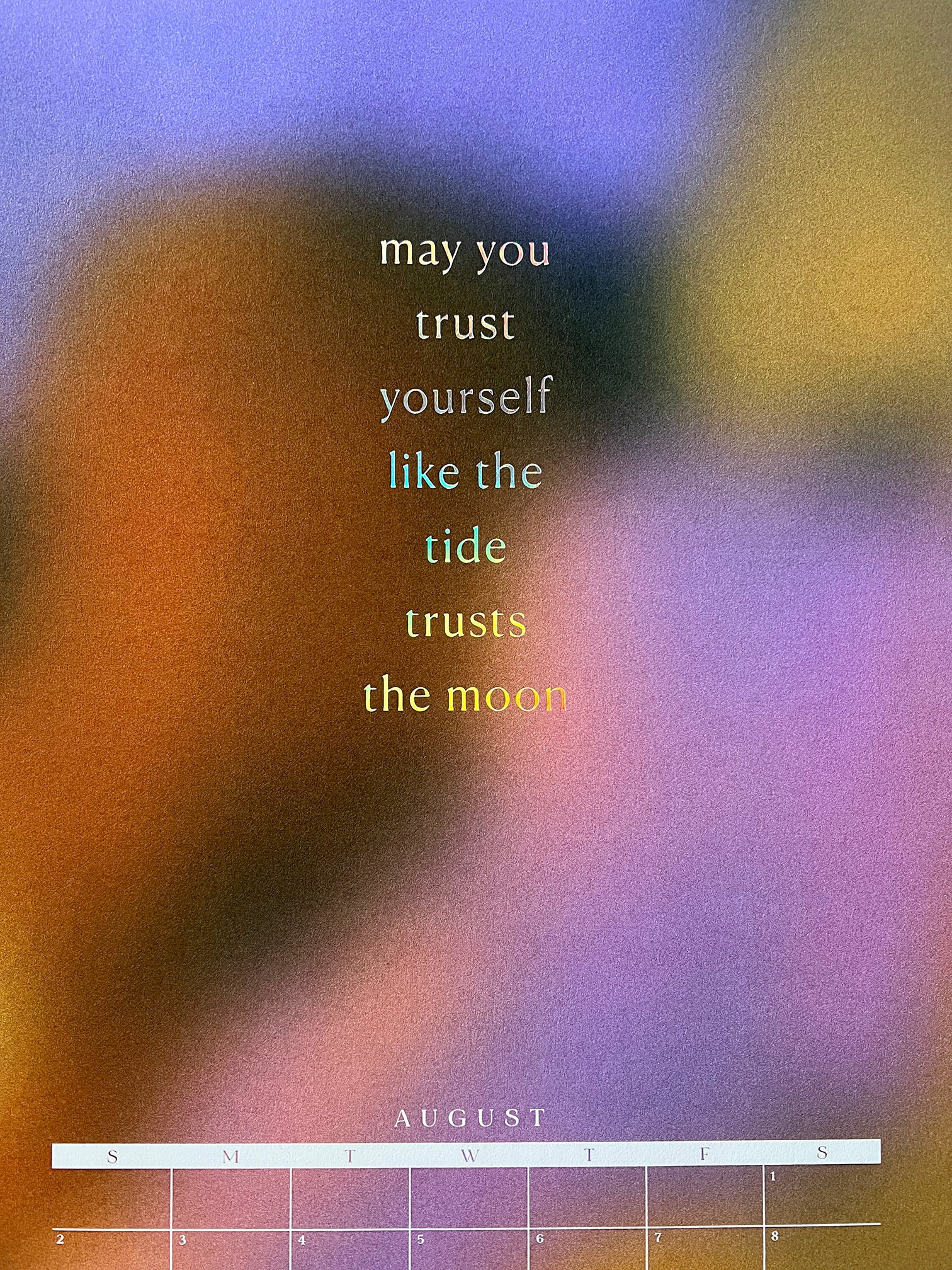 This year, we're embracing a new-to-us print process: foil! Each month is foil stamped in holographic foil to bring glorious, prismatic light to any room you hang it in.