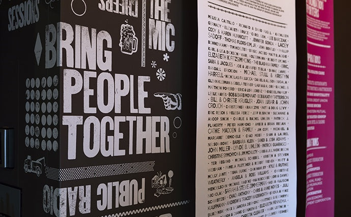 Station leadership was looking for an updated way to thank donors and supporters in the entryway of their community space and studio.