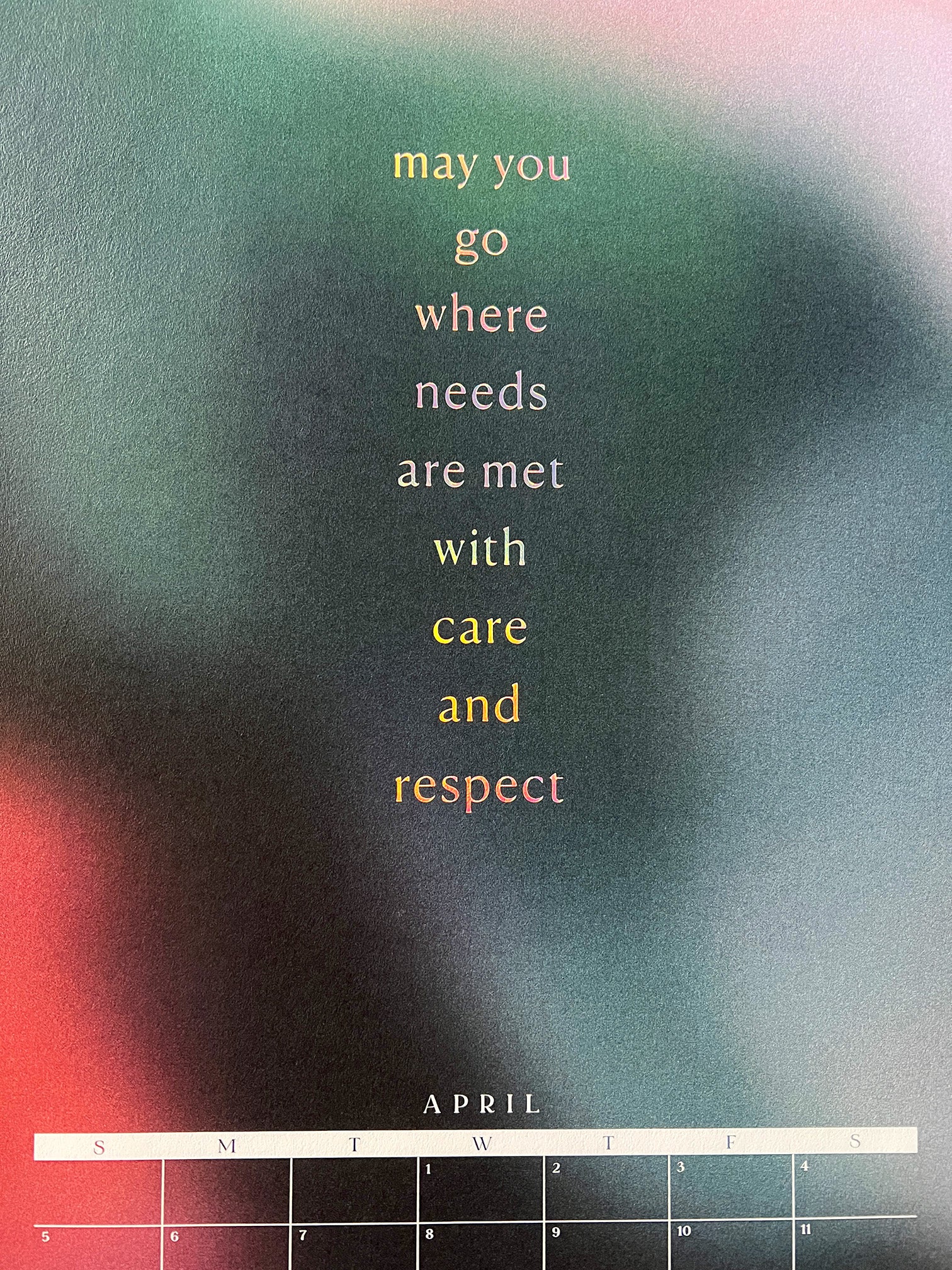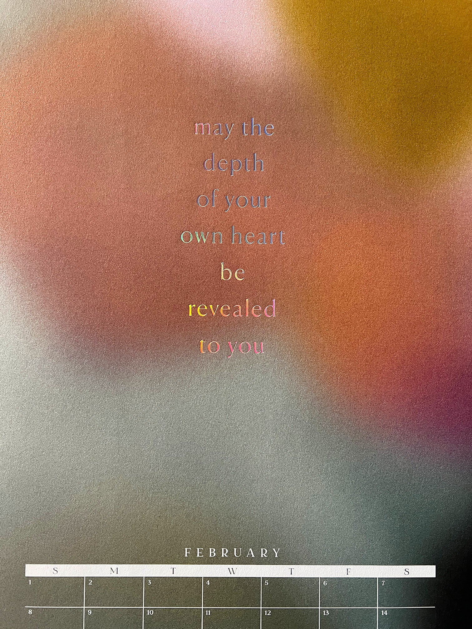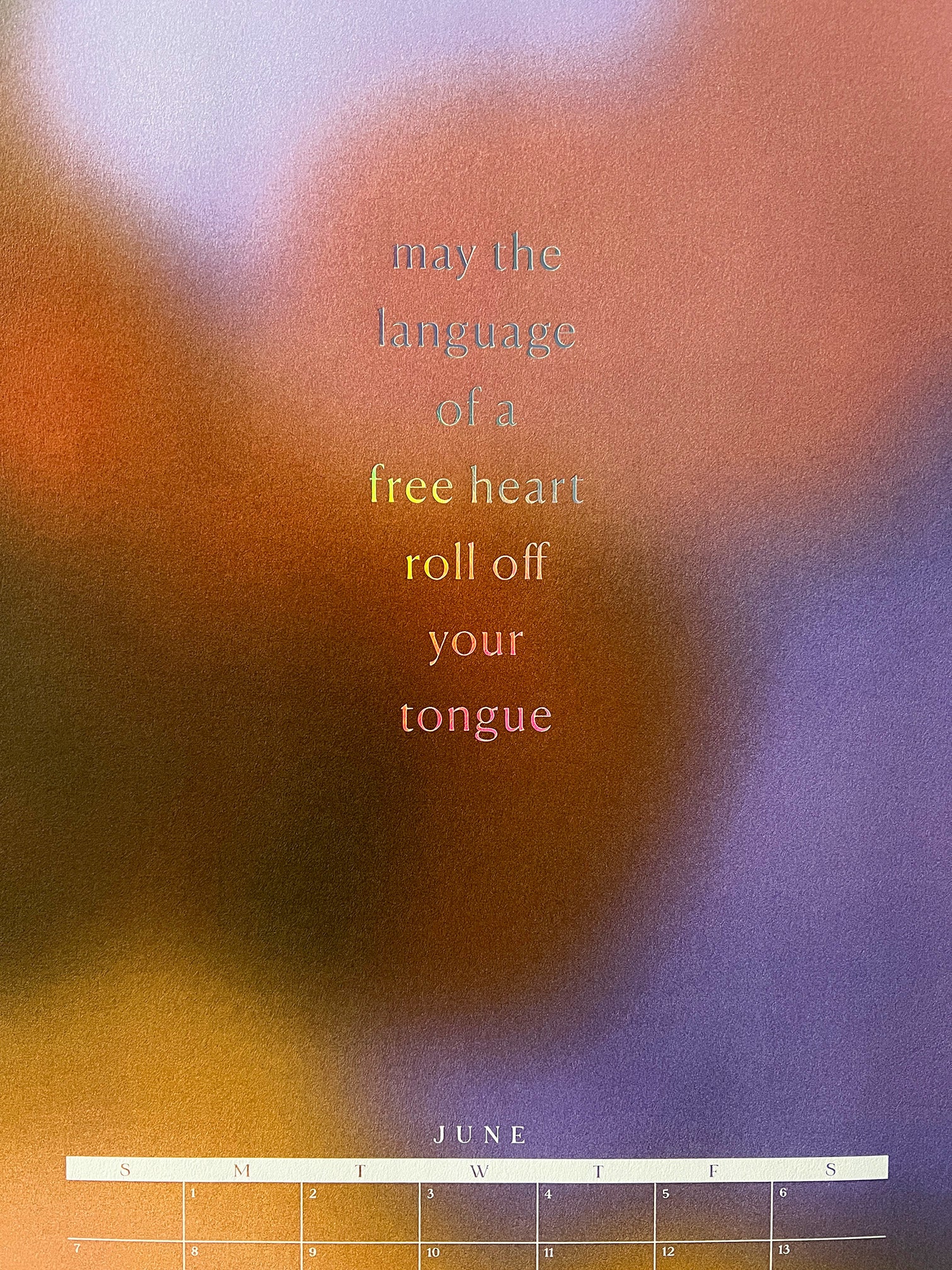 This year, we're embracing a new-to-us print process: foil! Each month is foil stamped in holographic foil to bring glorious, prismatic light to any room you hang it in.