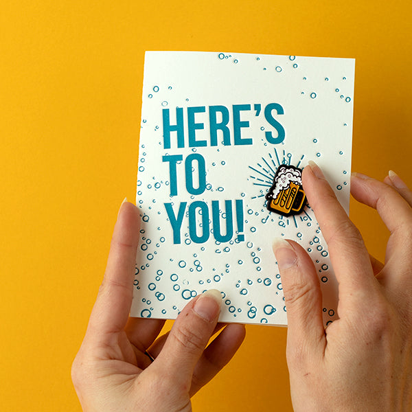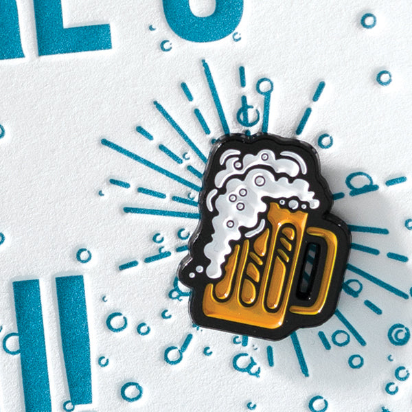 Cheers! Perfect for celebrating a 21st birthday or just a generally beer-worthy occasion, this bubbly beer stein enamel pin and greeting card will be the life of the party! The Beer Stein design is a wood cut selected from our century-old type collection.