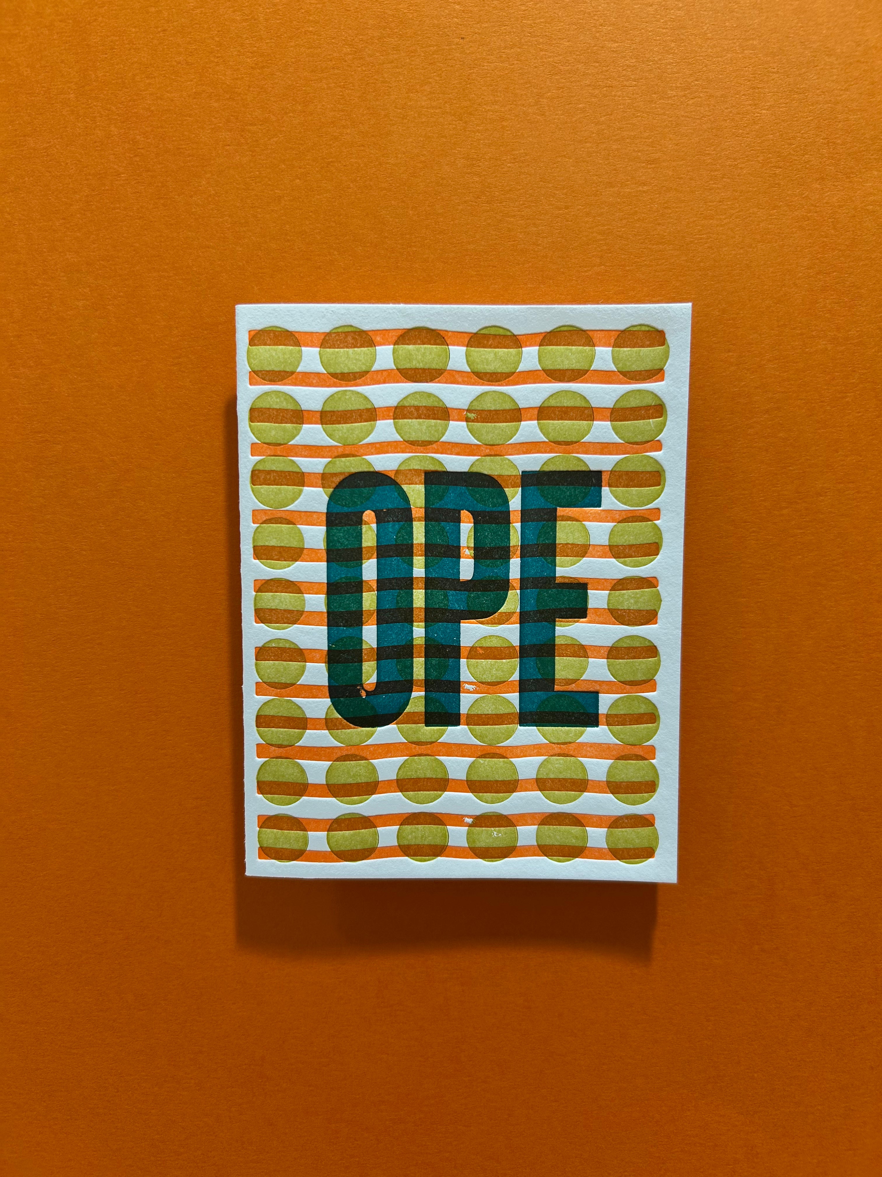Chartreuse, Orange and Teal ink on White card | Blank Inside | Kraft Envelope | 4.25 x 5.5